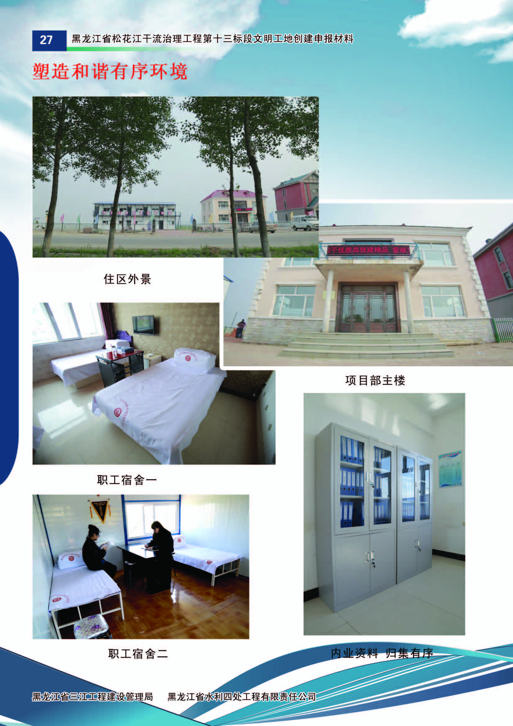施工中黑龍江省水利四處嚴(yán)格按照水利部《水利建設(shè)工程文明工地創(chuàng)建管理辦法》的要求,積極組織開展文明工地創(chuàng)建活動(dòng)。