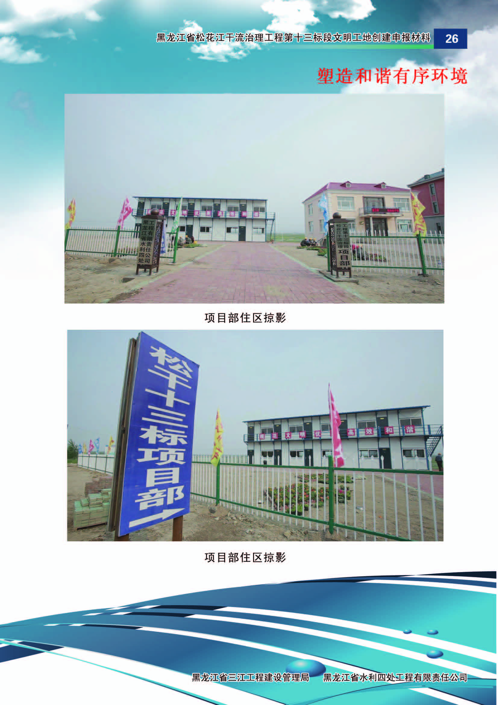 黑龍江省水利四處松干治理工程第十三標(biāo)段文明工地創(chuàng)建風(fēng)貌,猶如綻放在松花江沿岸上的一朵瑰麗之花,彰顯著水利行業(yè)的文明風(fēng)尚。