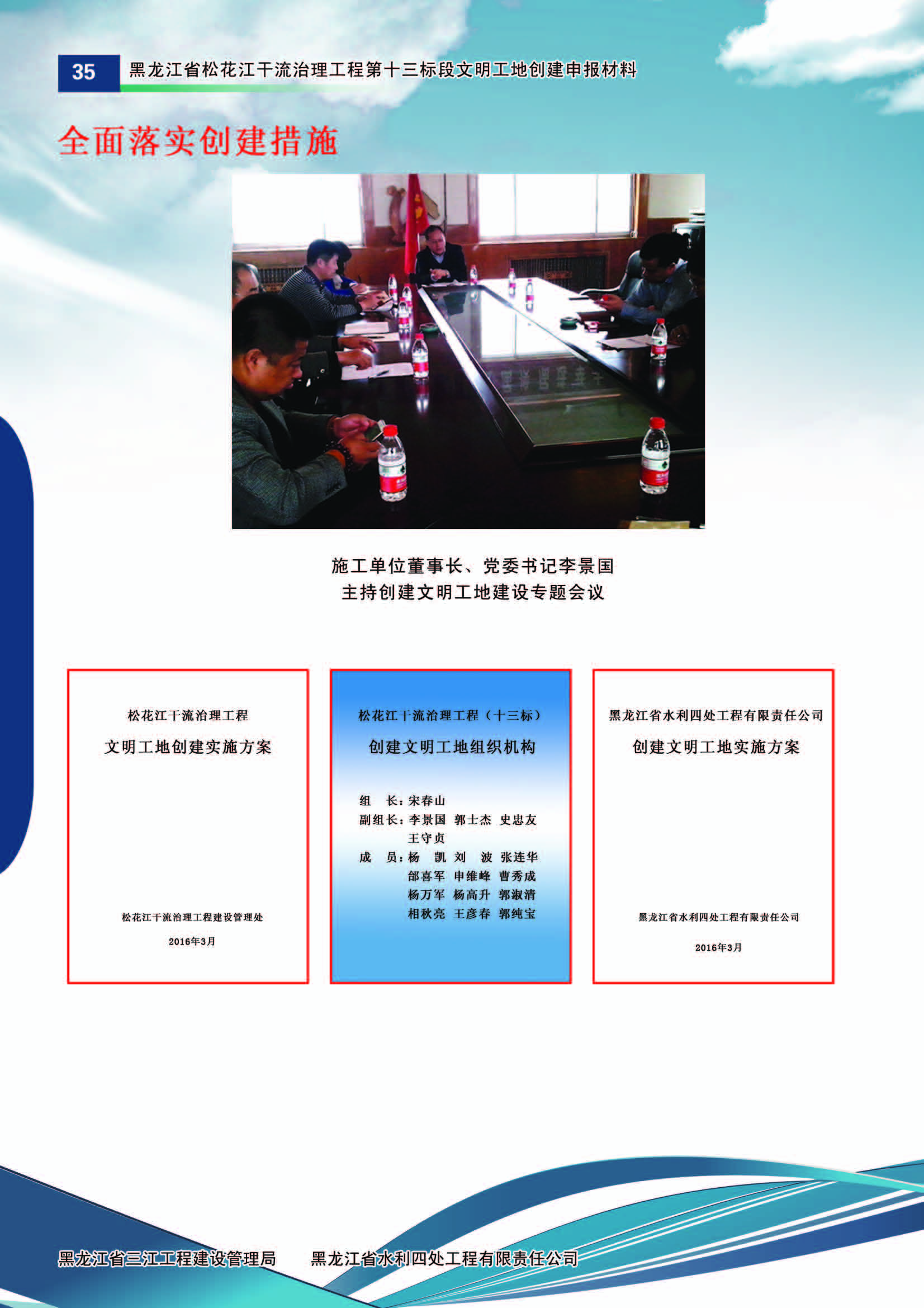 黑龍江省委、省政府高度重視三江干流治理工程建設(shè),成立了以省委主要領(lǐng)導(dǎo)為組長(zhǎng)的三江治理工程建設(shè)領(lǐng)導(dǎo)小組,多次召開專題會(huì)議部署建設(shè)工作。按照省委、省政府的統(tǒng)一部署,黑龍江省水利廳組建了黑龍江省三江工程建設(shè)管理局為項(xiàng)目法人單位,委派松花江工程建設(shè)管理處具體負(fù)責(zé)松花江干流治理工程的建設(shè)與管理。