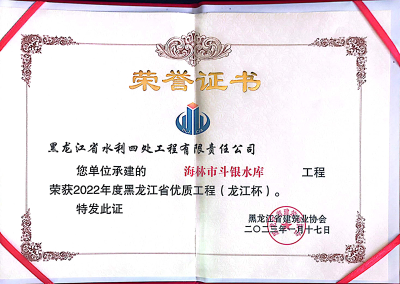 黑龍江省優(yōu)質(zhì)工程(龍江杯)獲獎(jiǎng)證書
